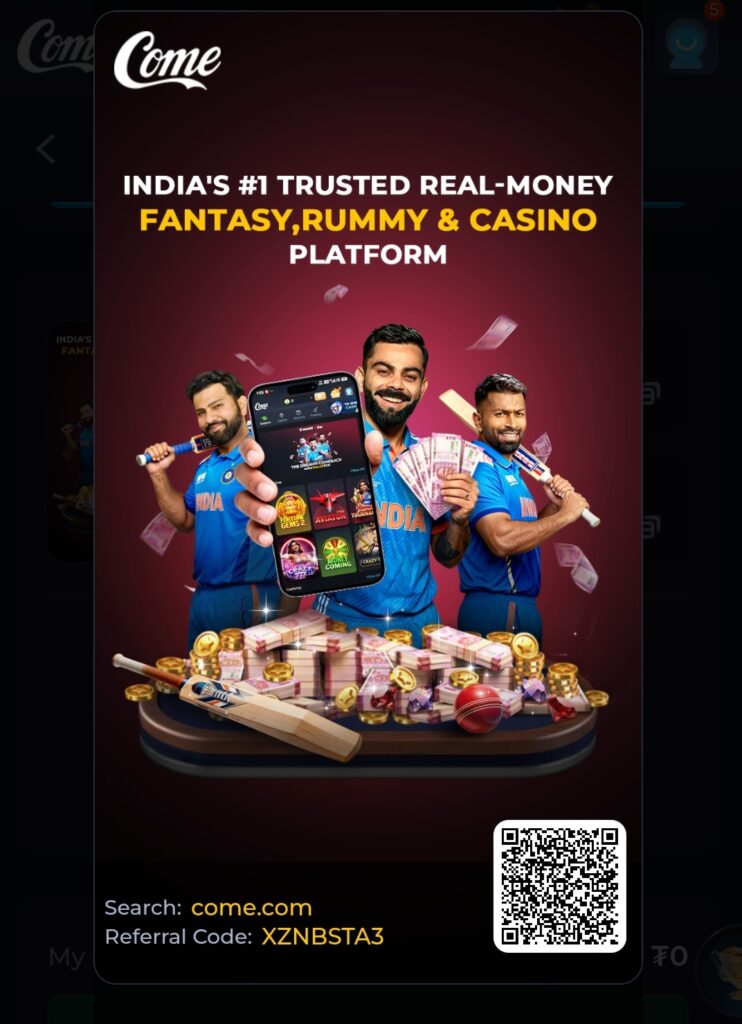 Come app ek online gaming platform hai jahan users different types ke game casino style games slot games aur kuch skills based game khel sakte hai es tarah ke platform game mein user ko enter tainment provide karna hota hai kuch yah game app refferal program aur bonus system bhi deti hai jaise ki user ko extra reward mil sakta hai yah game app special un logo ke liye hai useful hoti hai jo mobile par time spend karte hue games ka maza lena chahte hai