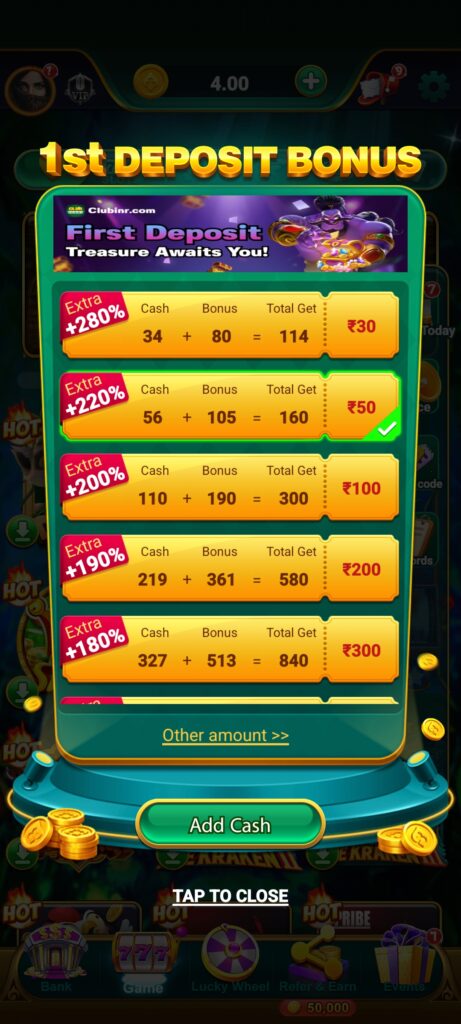- Daily Login Bonus: Har din login karne par coins ya cashback milta hai